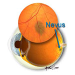 A flat, benign, pigmented area that may appear inside the eye.